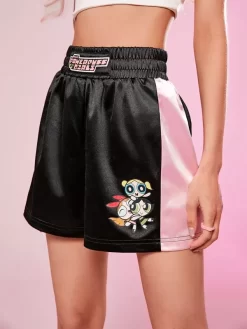 The Powerpuff Girls ROMWE Cartoon Graphic Colorblock Shorts