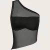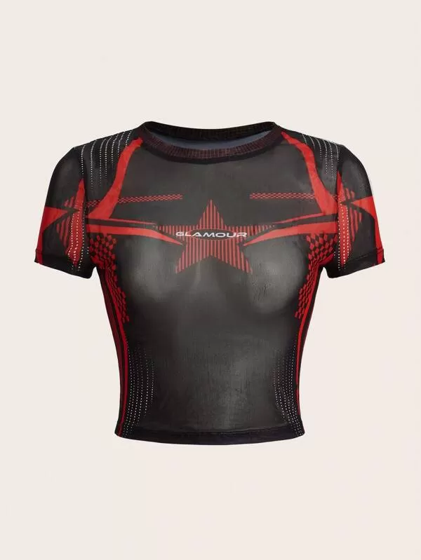 Letter and Star Print Crop Mesh Top Without Tube