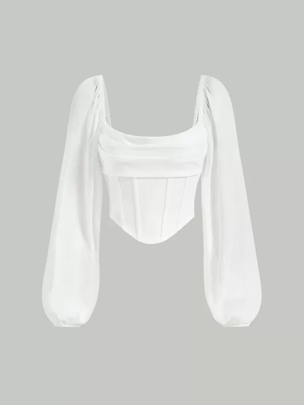 MOD Lantern Sleeve Ruched Scoop Neck Asymmetrical Hem Crop Top