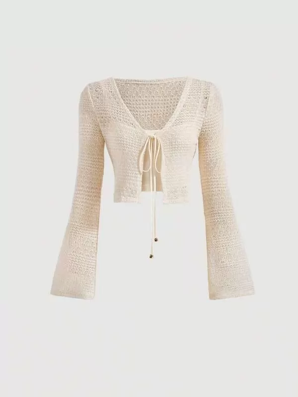 MOD Tie Front Trumpet Sleeve Crop Top Without Cami Top