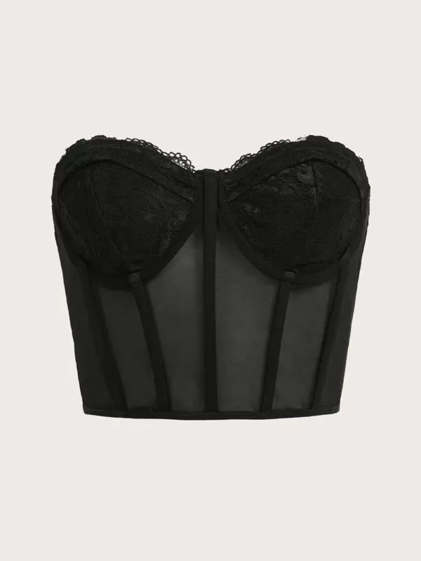Lace Insert Backless Bustier Crop Mesh Tube Top