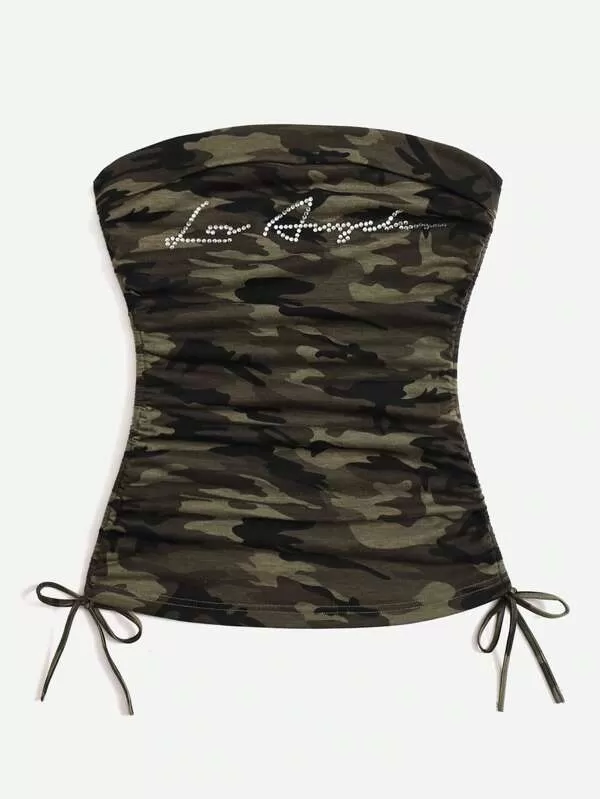 Western Cowgirl Camo Print Drawstring Side Tube Top